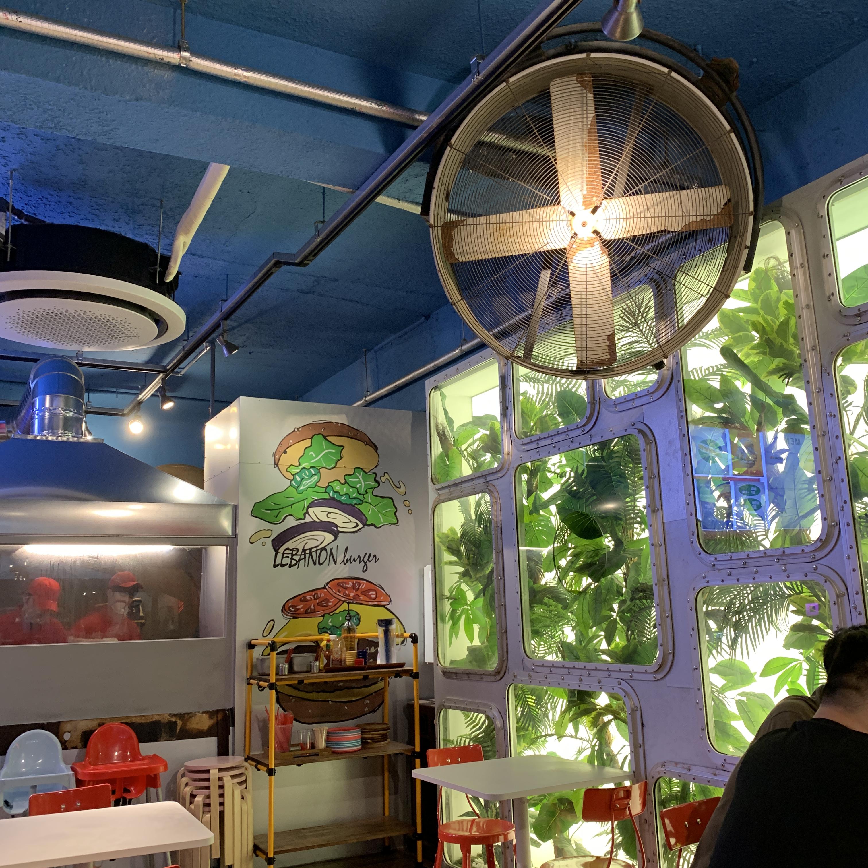 밖에서 본 레바논 버거는 큰 통유리로 내부가 들여다 보이는 시원한 인테리어가 눈에 띄네요