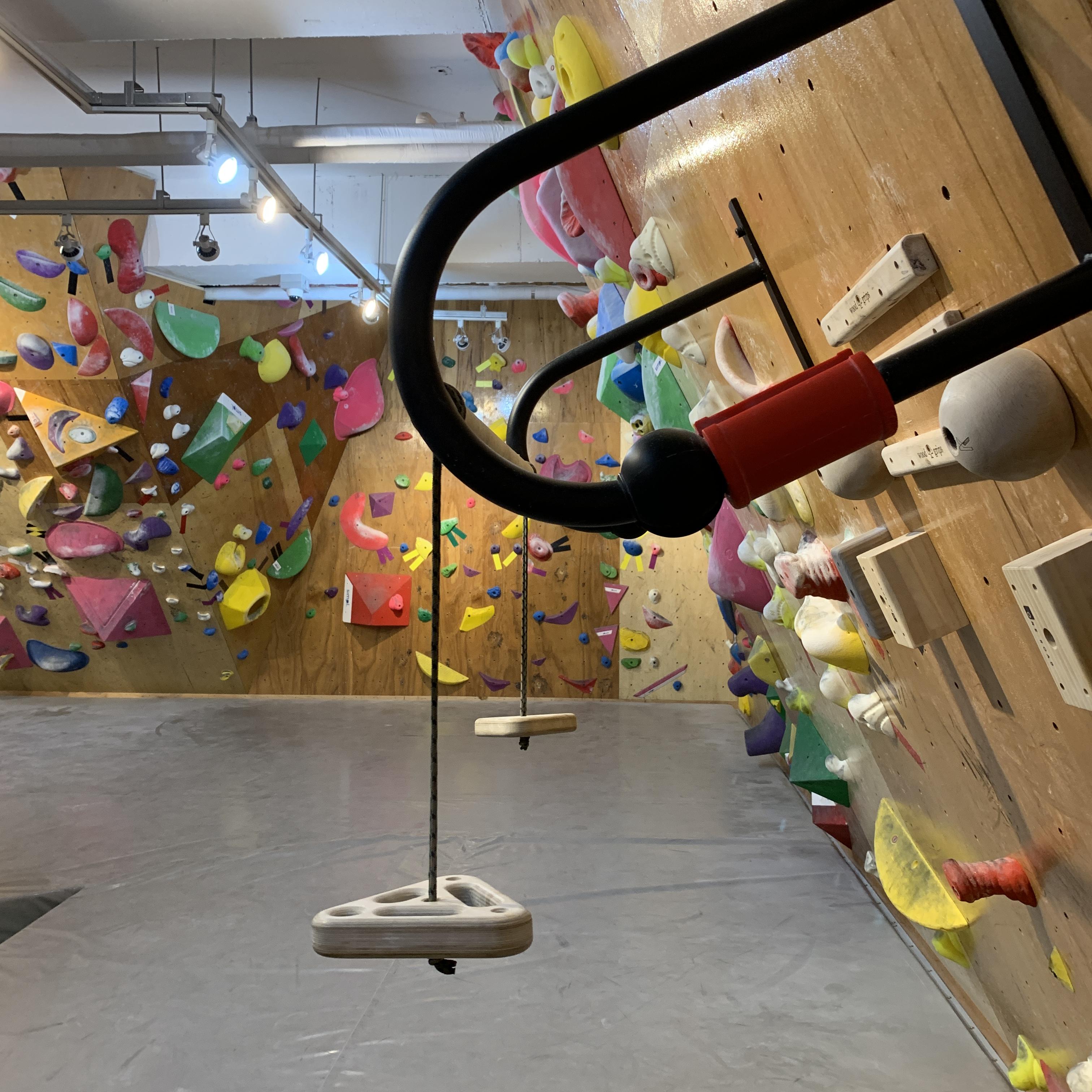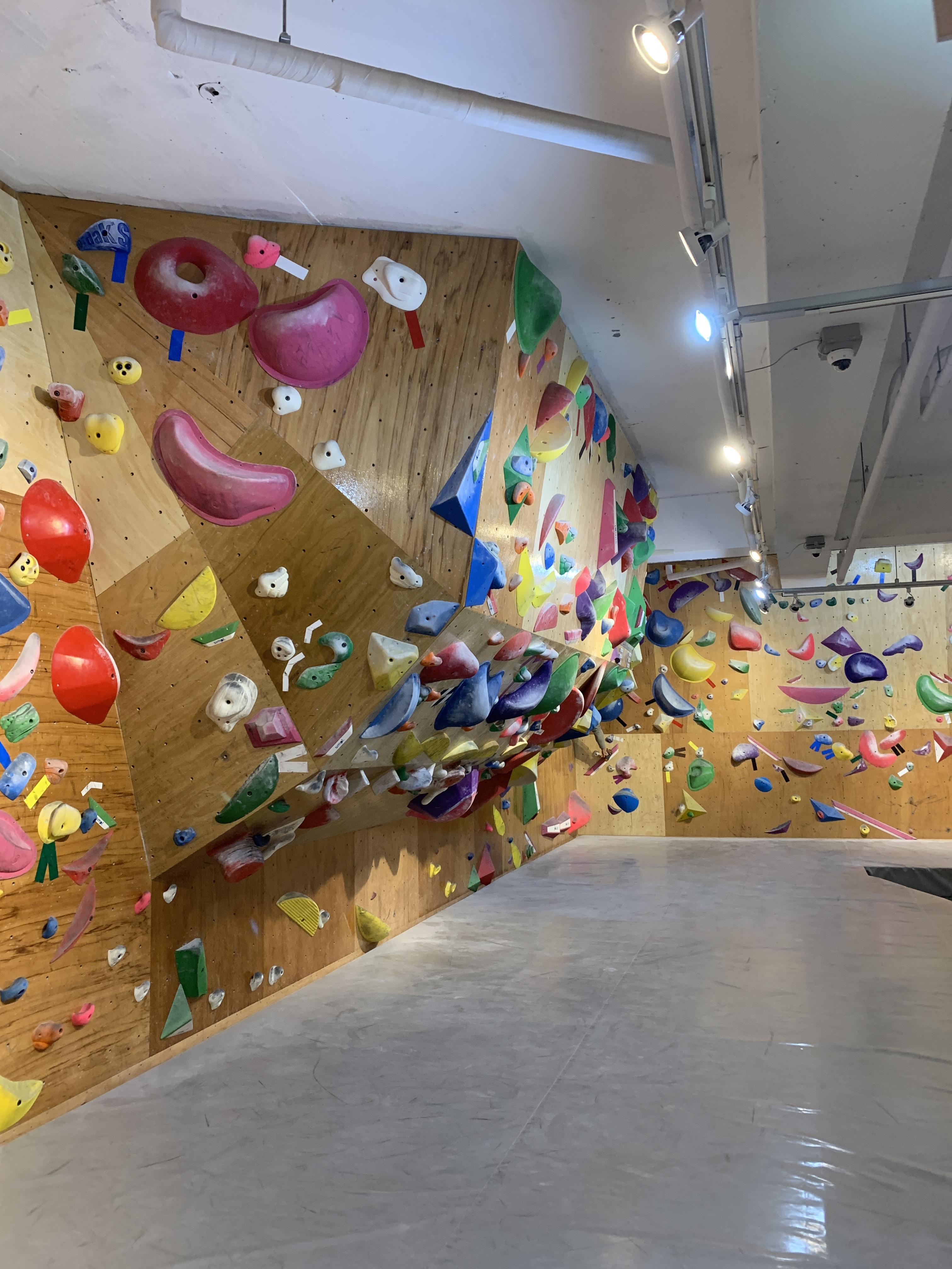 내부는 나무로 된 벽에 홀드들이 박혀있고, 바닥에는 넓게 매트가 깔려있어요