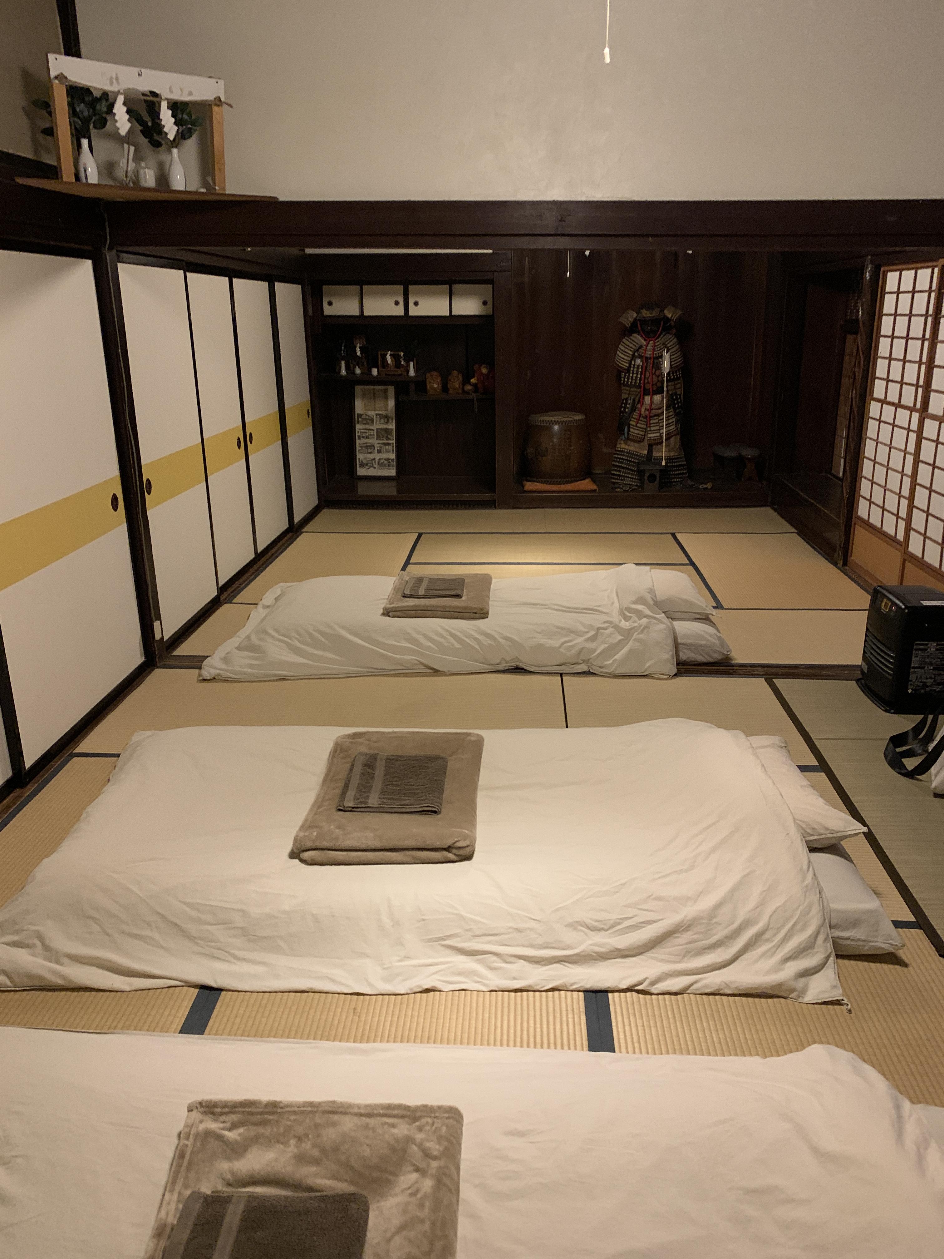 다다미에서 자는 경험이 신선하긴 하지만 몹시 춥다는 걸 알아두세요