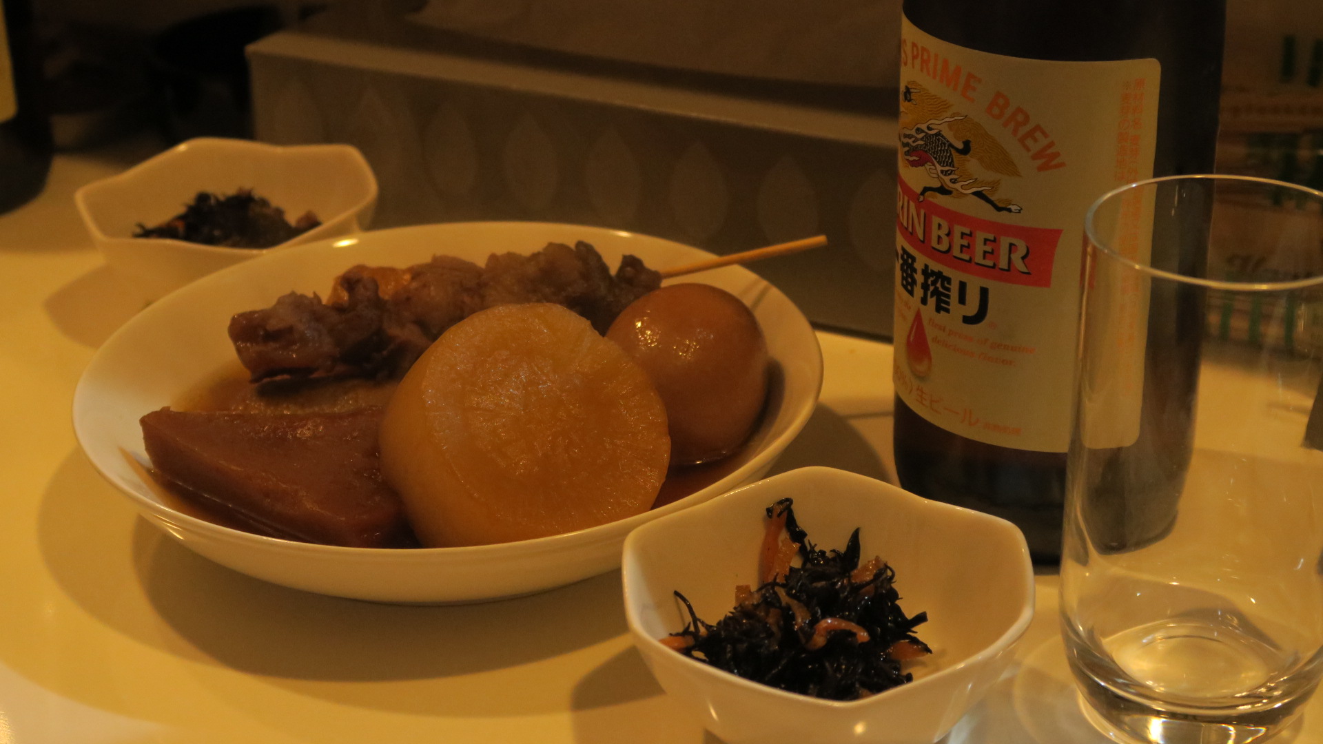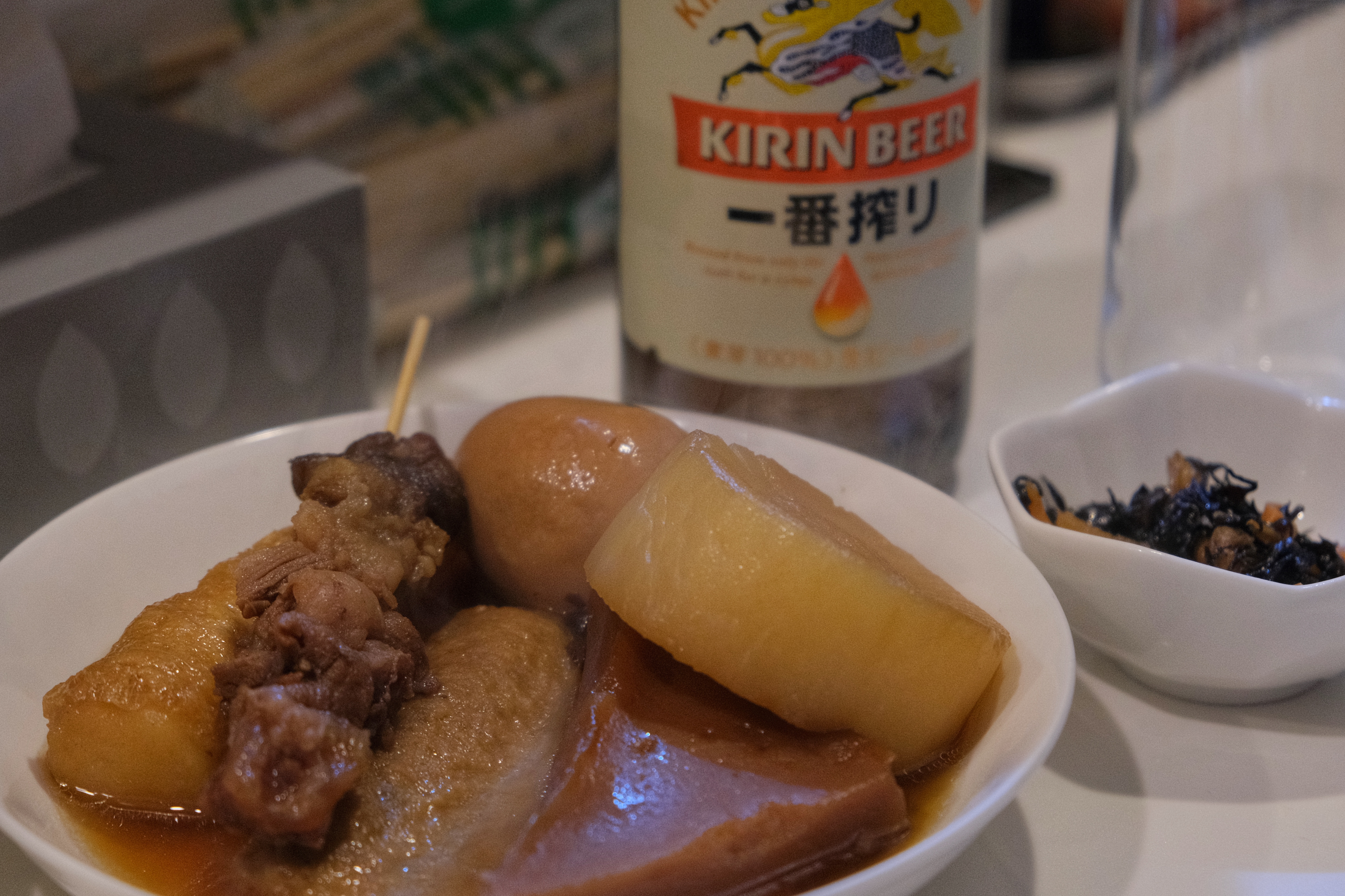 간단하게 맥주랑 꼬치, 타마고, 무 등을 먹을 수 있다