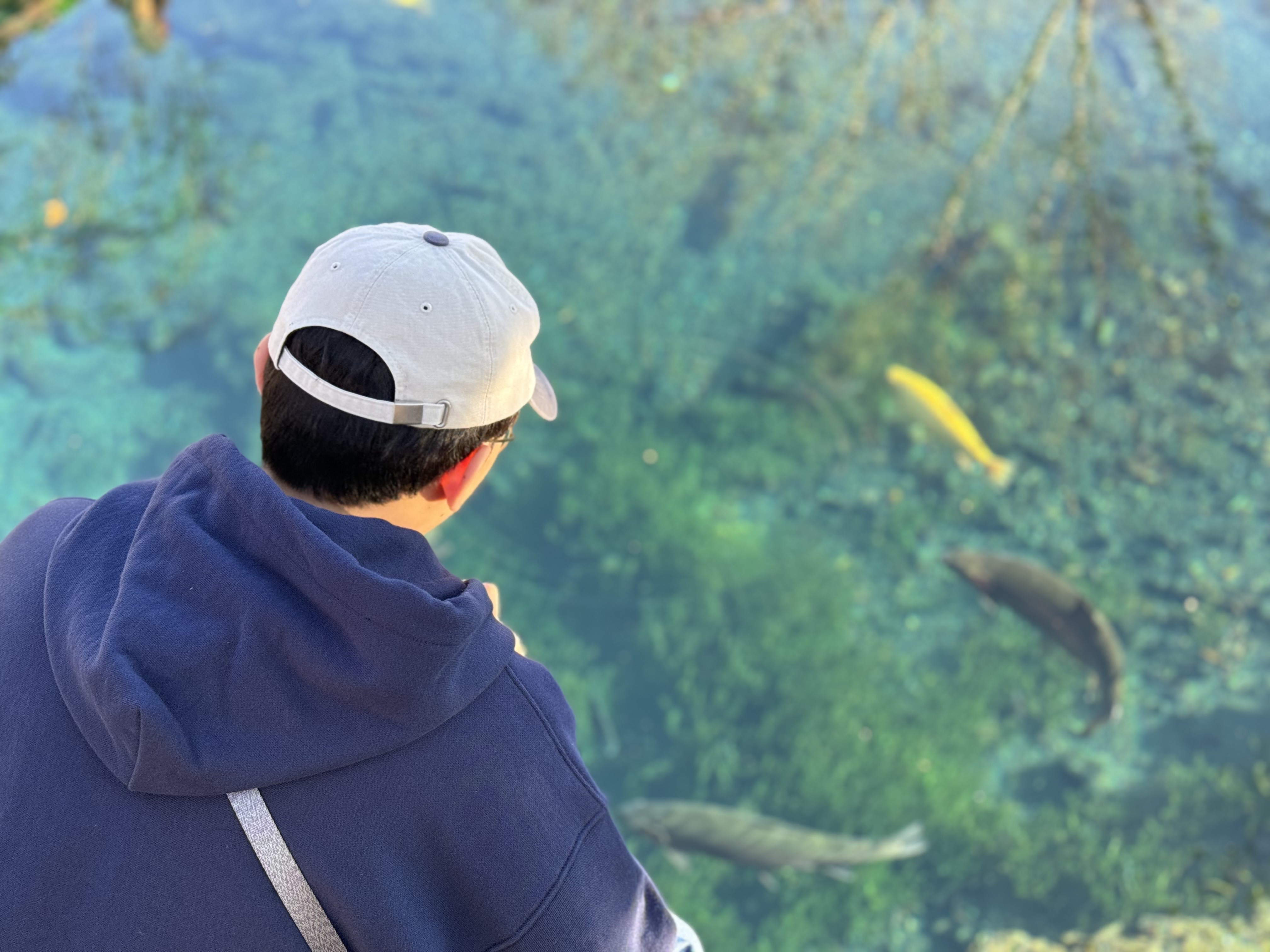 이곳의 특징은 물이 엄청 맑다는 것! 후지산에서 녹은 물이 내려와서 만들어진 호수라 일본에서 제일 맑은 물이라고 함