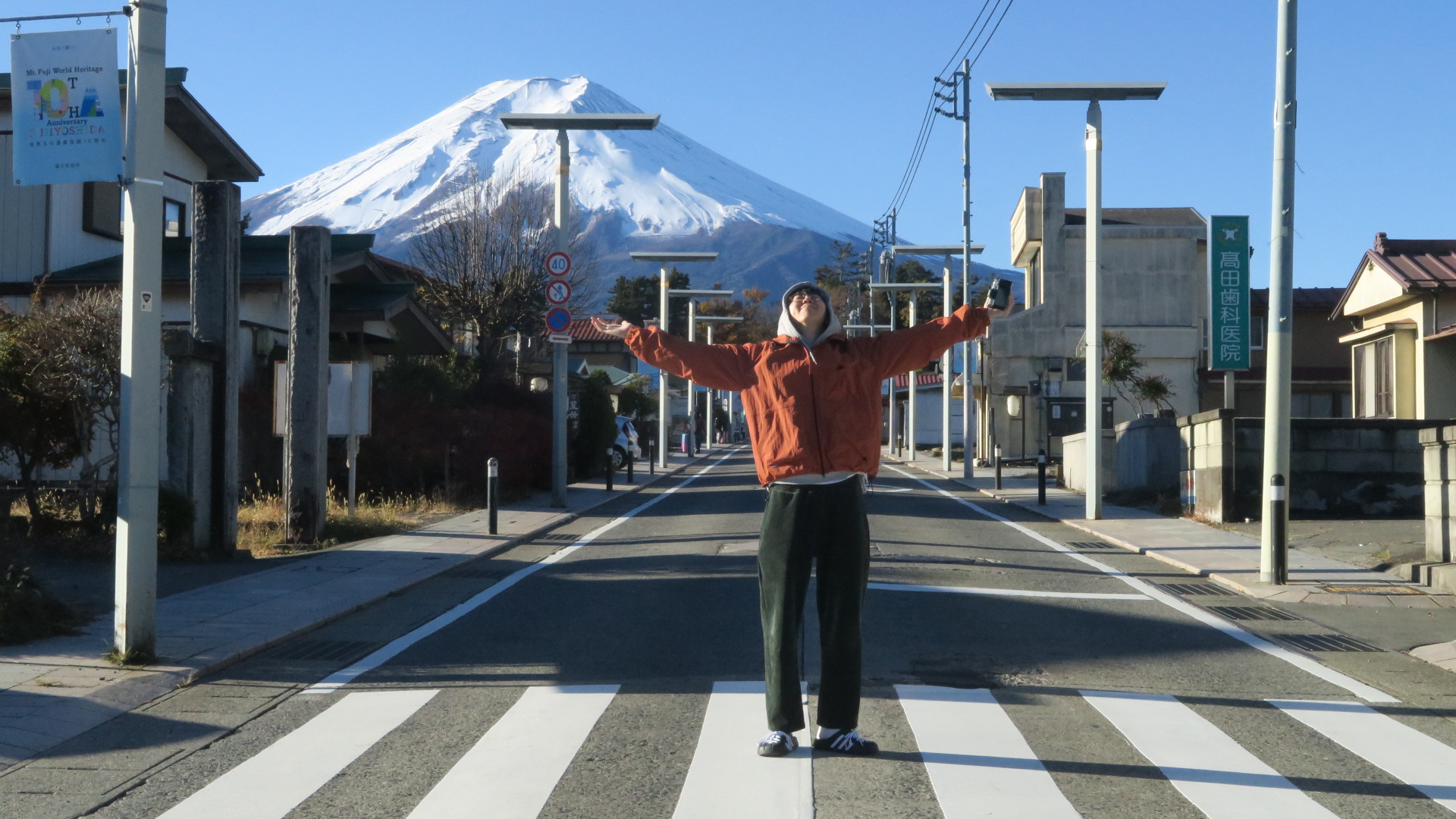진짜 숙소 바로 앞인데 후지산이 저렇게 가까이 보였다. 너무너무 신기했고 후지산의 웅장함에 바로 잠이 깼음