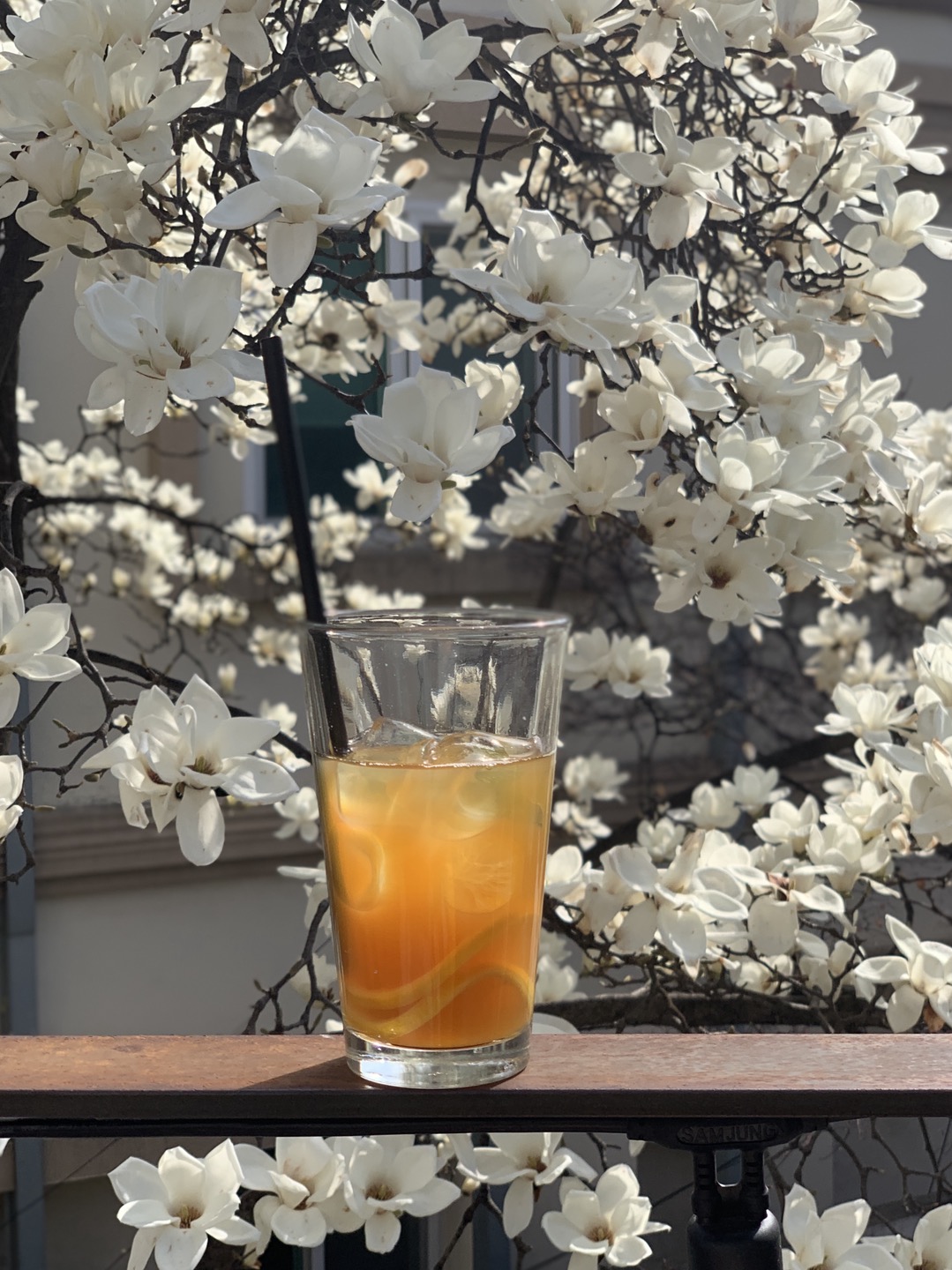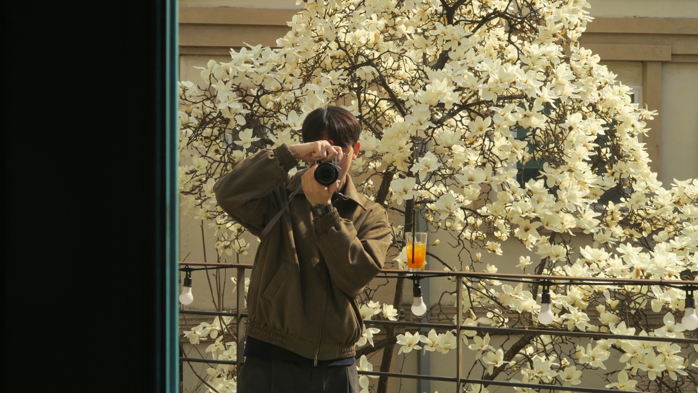 카페 안에 있는 큰 목련나무가 이쁘게 펴서 카페 2층에서 목련과 함께 사진을 찍을 수 있어요