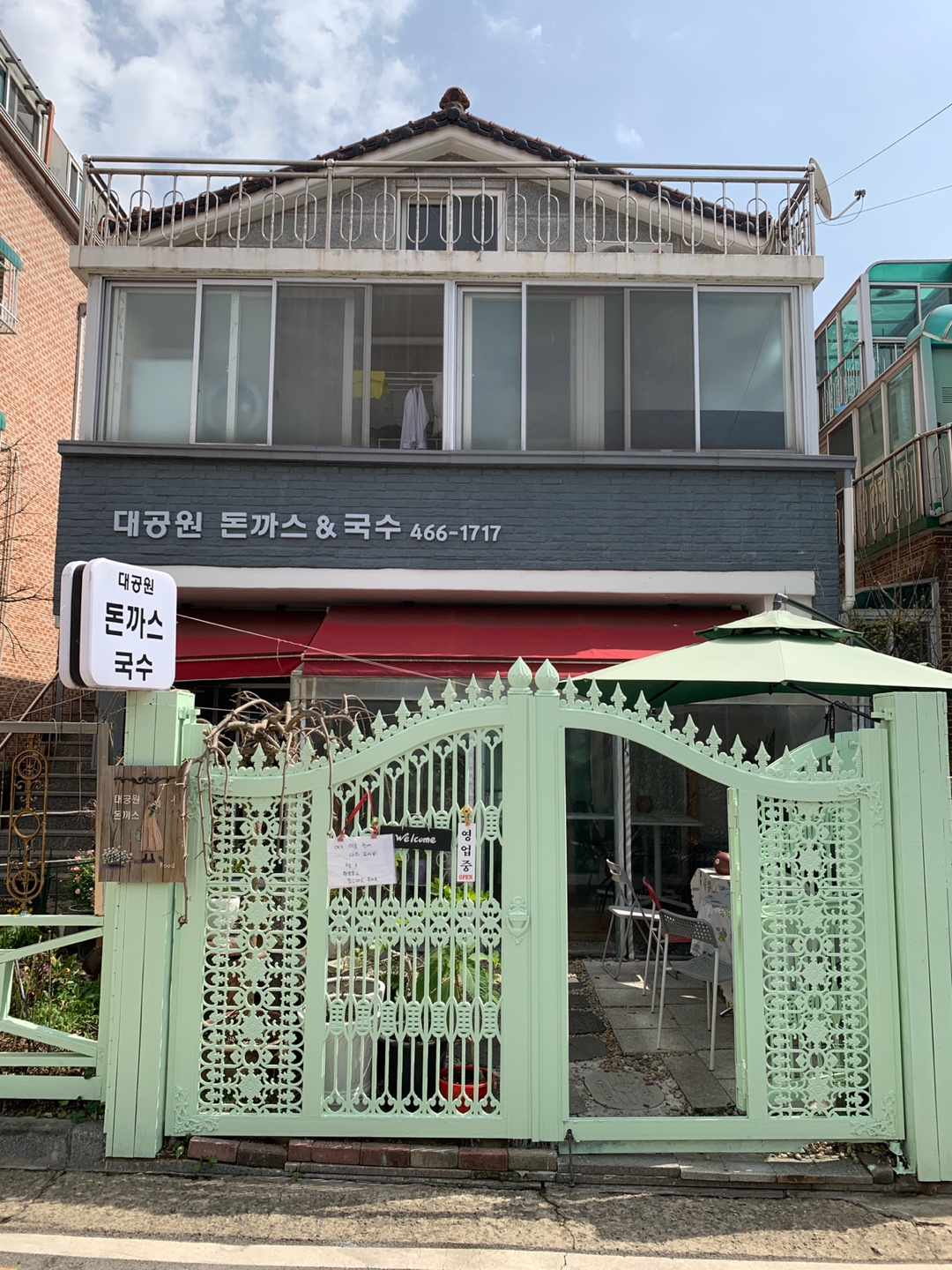 대공원 돈까스 입구입니다. 가정집 1층에서 운영하시는 작은 식당이에요. 마당에는 아기자기하게 식물도 가꾸고 계세요