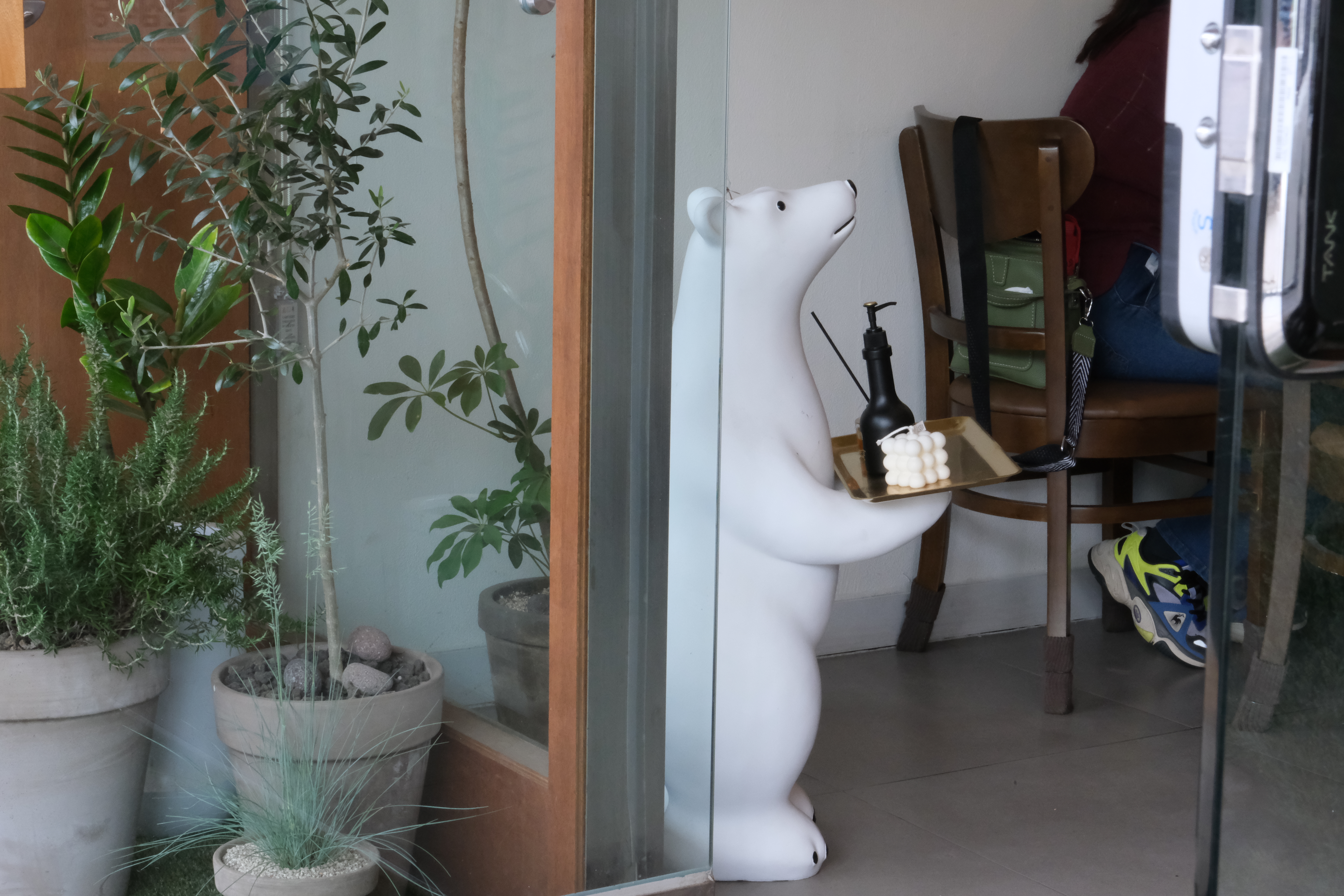 내부는 깔끔하고, 가게 입구에는 북금곰돌이가 한 마리 서있다. (귀여움)