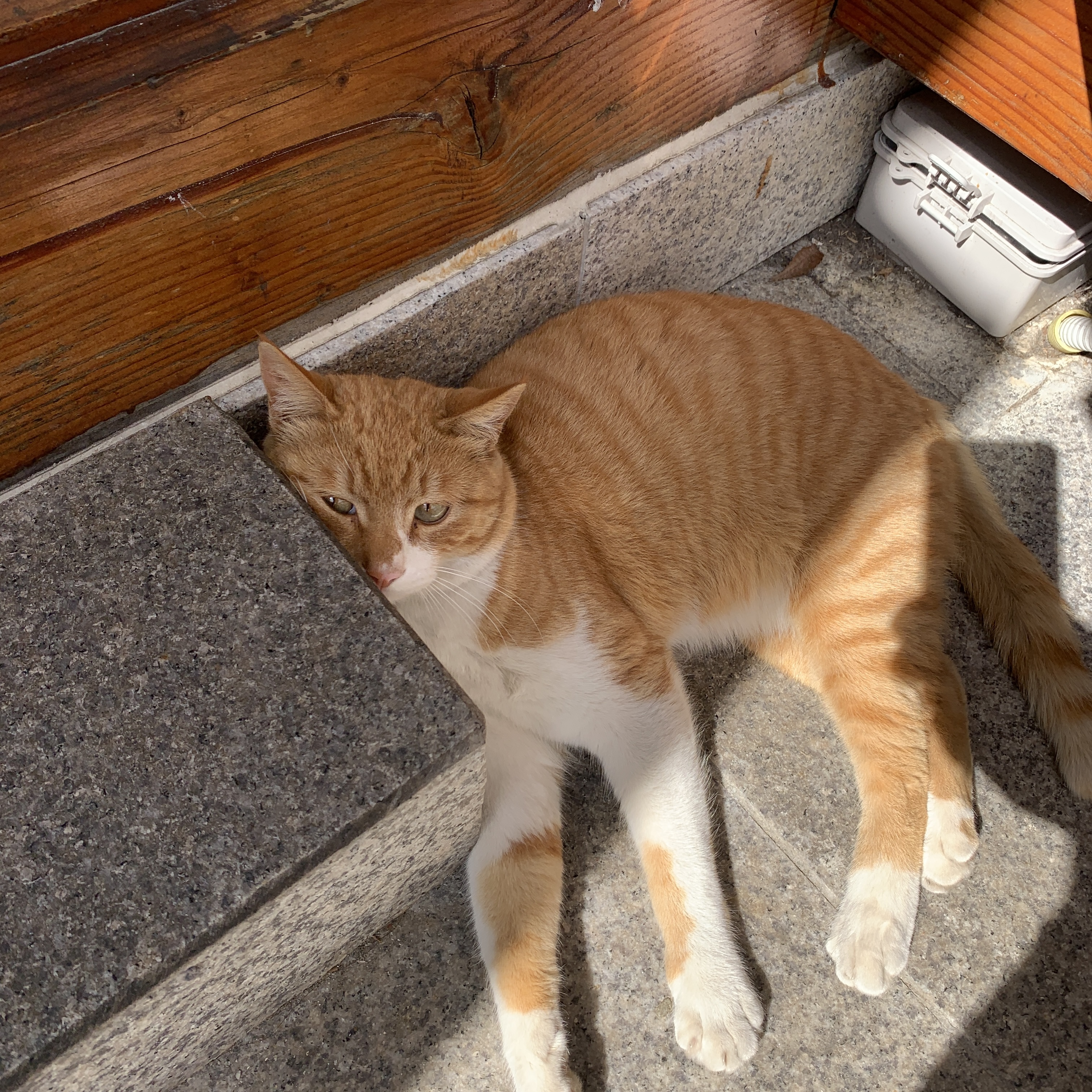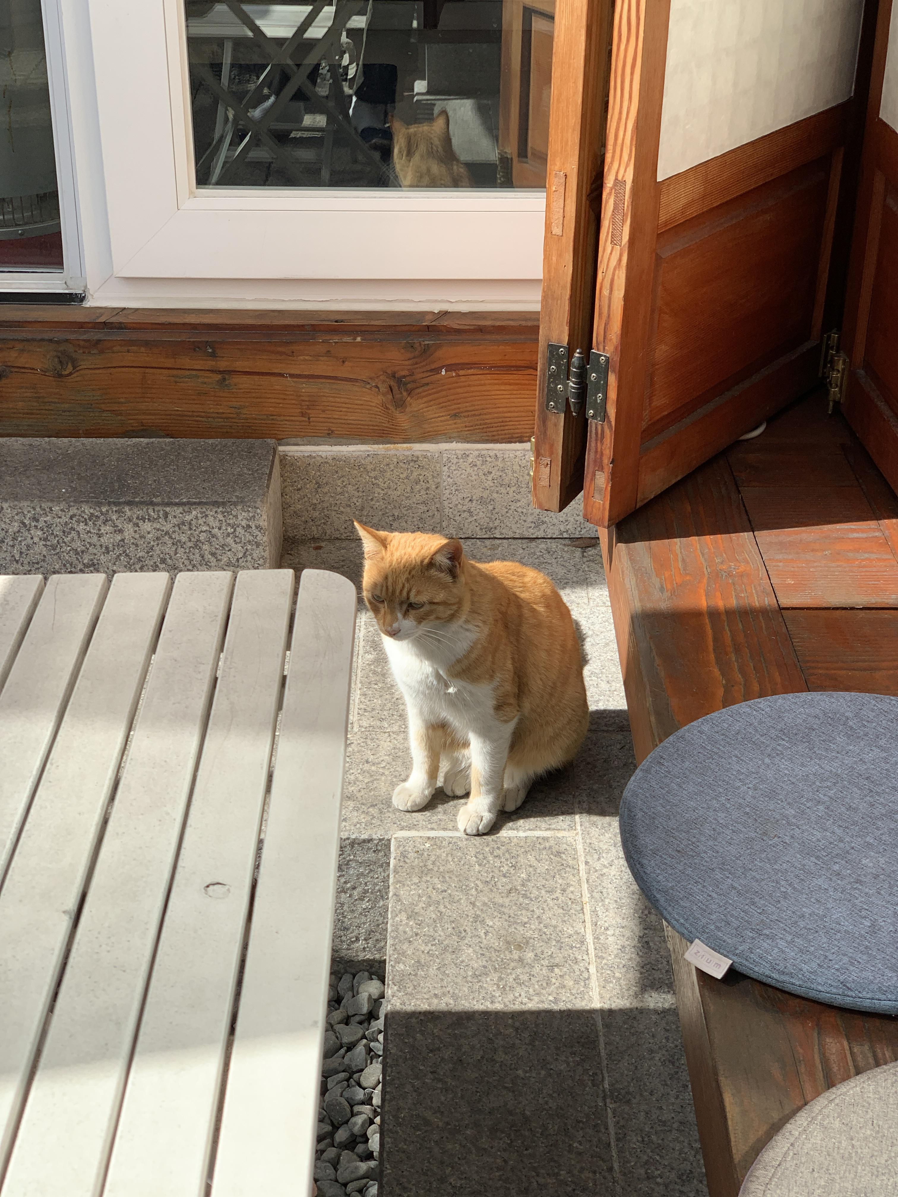 테라스에 나갔더니 매우매우 귀여운 고양이가 문앞에서 맞아줍니다ㅎ-ㅎ